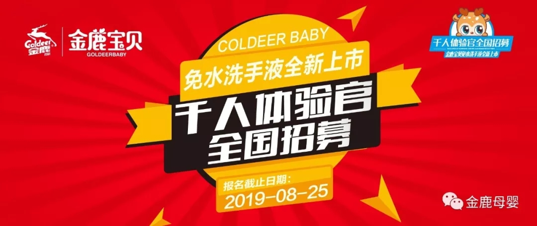 金鹿寶貝新品季 | 千人體驗官全國招募,點贊贏華為P30pro! 雙手是人體最活躍的部分 它們每時每刻都要接觸各種各樣的東西 沾滿了各種污物、細菌 若不及時將這些污物細菌清除干凈 就會為健康埋下隱患 金鹿寶貝領銜新品 掀起健康手護新革命 這是一場,關于健康的升級 這是一道,關于護膚的工序 這是一款,關于殺菌的手護 由你,來揭開我的神秘面紗... 2019-08-21 |